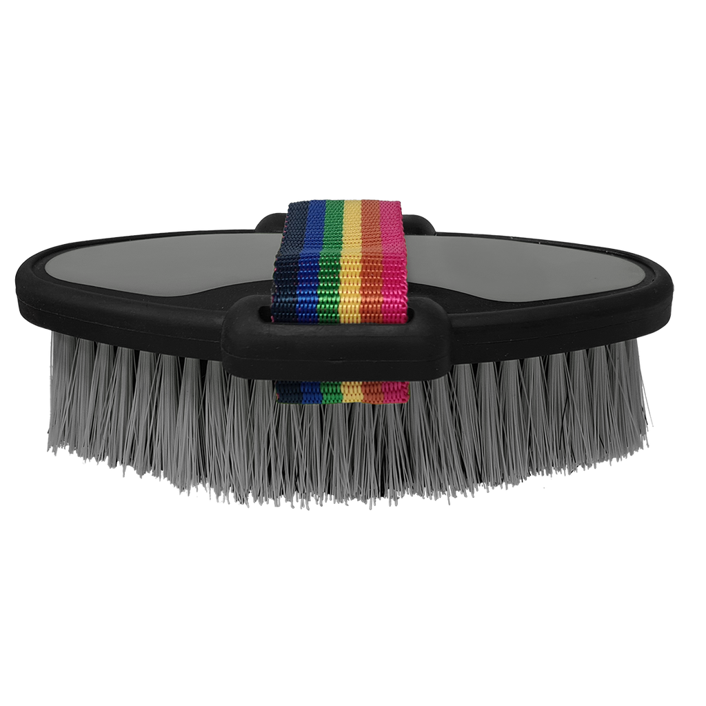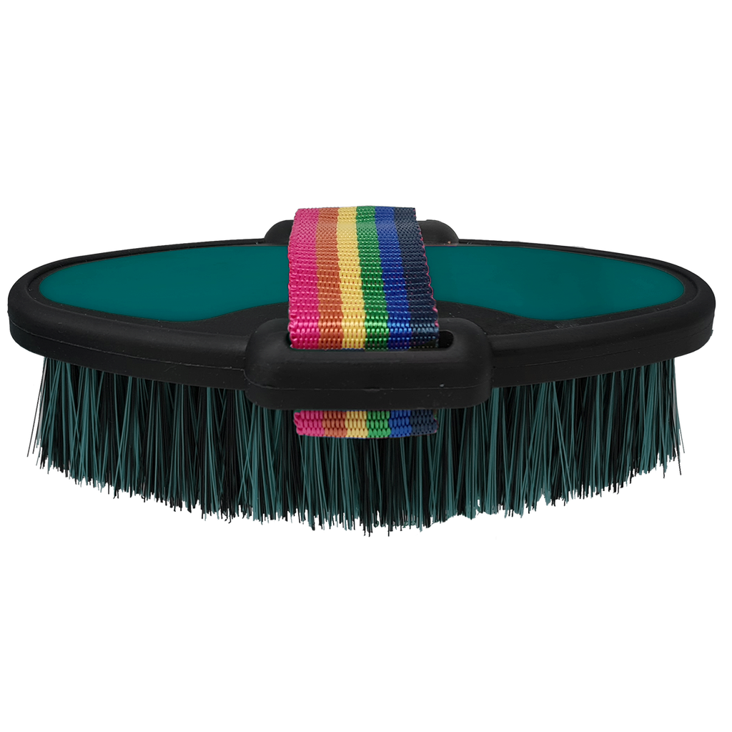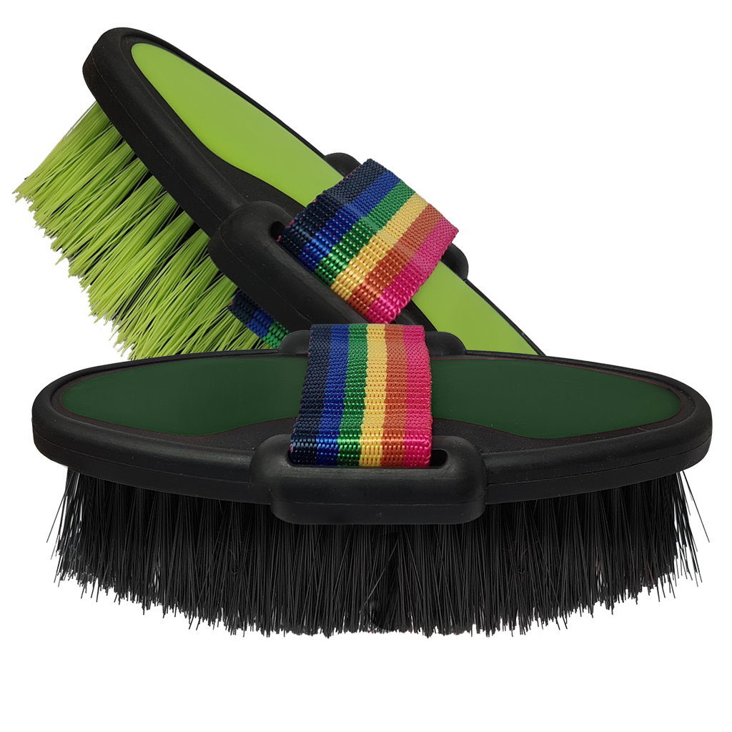 Achieve a show-ring shine with the Show Time Body Brush. This soft, high-quality brush is expertly designed to remove fine dust and dirt, leaving your horse's coat smooth and gleaming. Measuring 17 x 9 cm, it's the perfect size for comfortable use, ensuring a gentle yet effective grooming experience. Available in assorted colors, the Show Time Body Brush is a must-have in your grooming kit, combining functionality with a touch of style. Make every grooming session a success with this essential brush.
