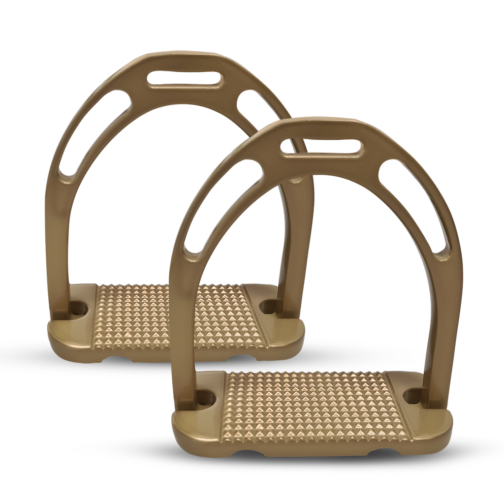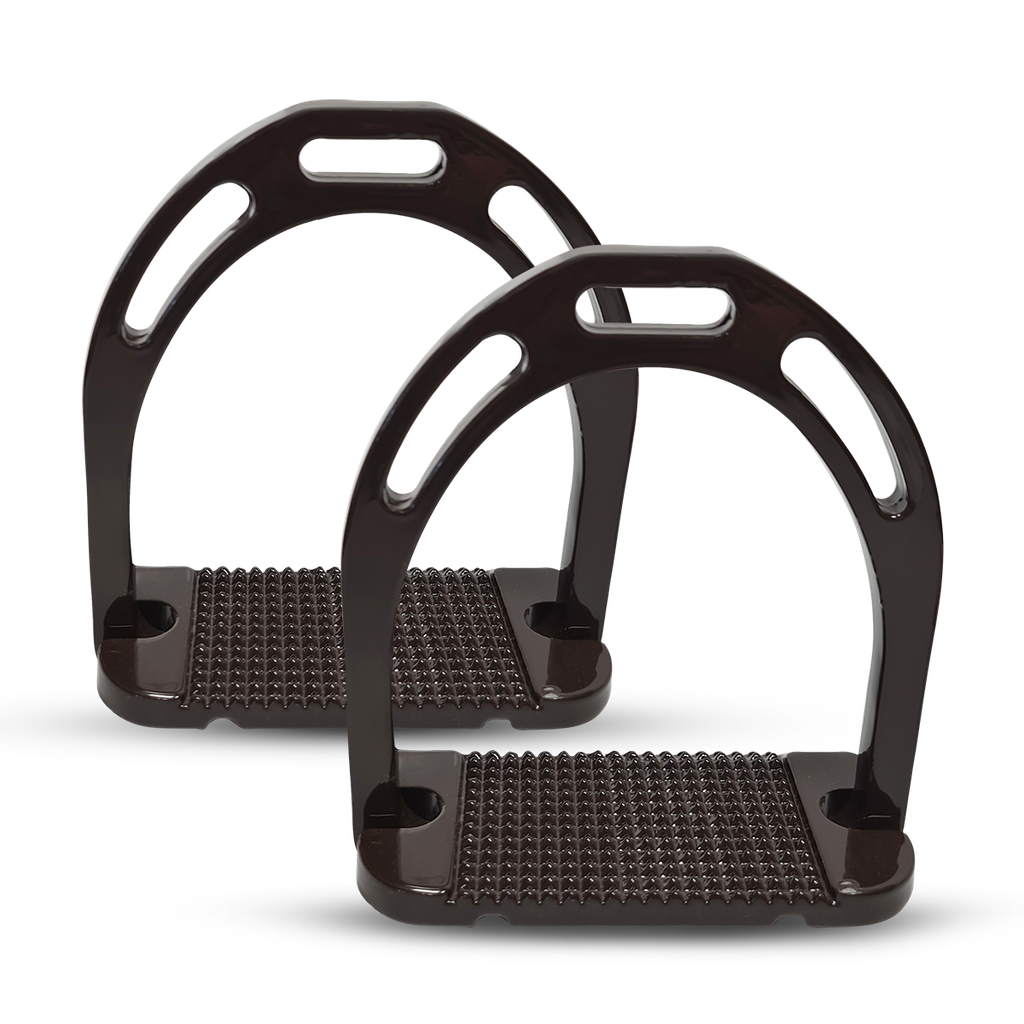 Premium Aluminium Construction:  Engineered with high-quality aluminium, these stirrup irons combine strength and lightweight design. The material ensures long-lasting durability while minimizing the overall weight, reducing fatigue during extended riding sessions.