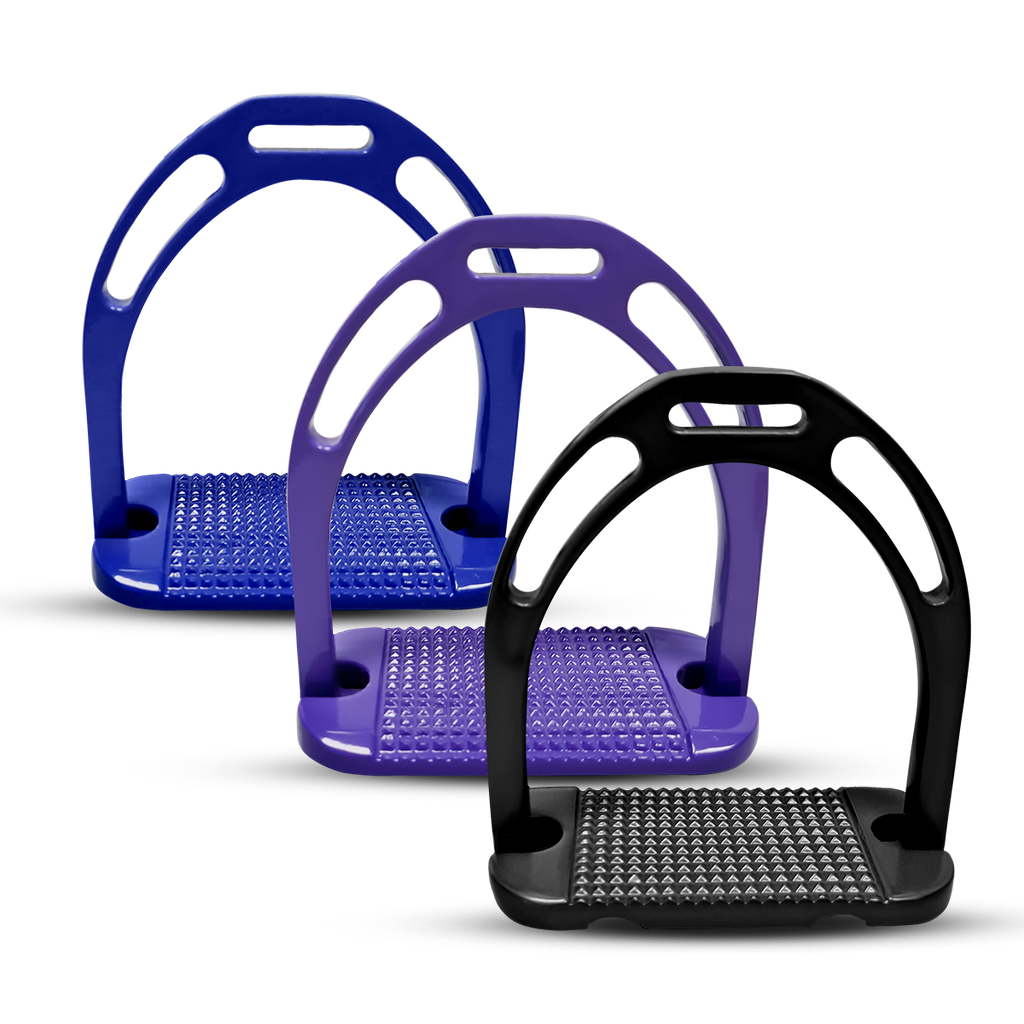 Sleek and Stylish Finish:  Elevate your riding gear with the sleek and modern aesthetics of our stirrup irons. Match them up with the colour of your outfit!  The polished aluminium finish not only adds a touch of elegance but also resists tarnishing, maintaining a pristine look ride after ride.