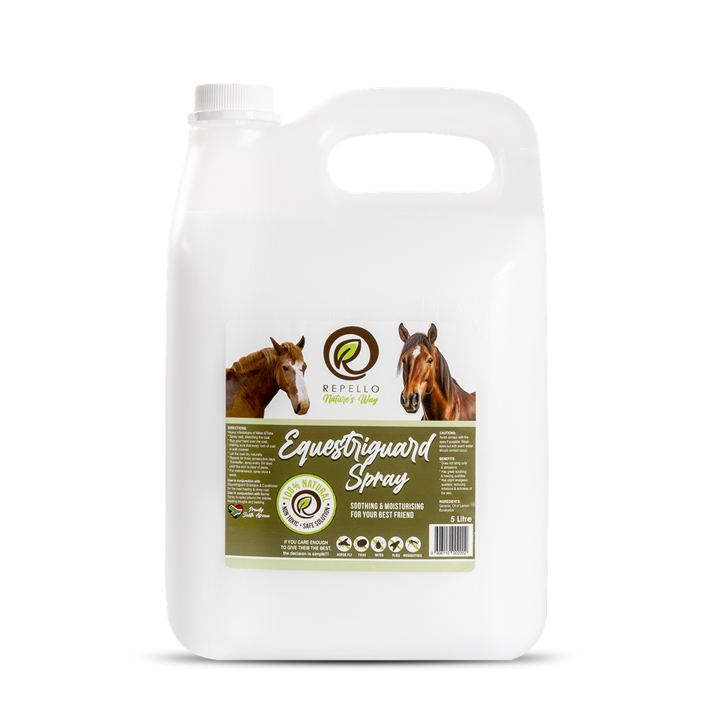 Repello Equestriguard is a natural, non-toxic, highly effective treatment. For that perfect shiny coat, Equestriguard is a natural & non-toxic moisturising insect repellant that is so soft and gentle on the skin that it can even be sprayed on abrasions or wounds without stinging.